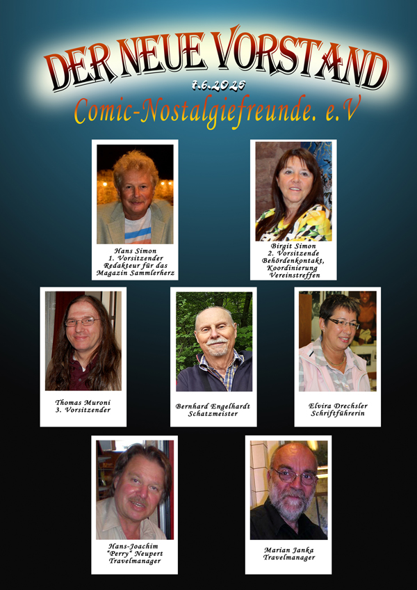 Sie sind hier: Comic Nostalgiefreunde * Wir über uns * Vorstandschaft Wir über uns Vorstellung Ausrichtung Händler Zeichner Vorstandschaft Mitglieder Vereinsinternes
